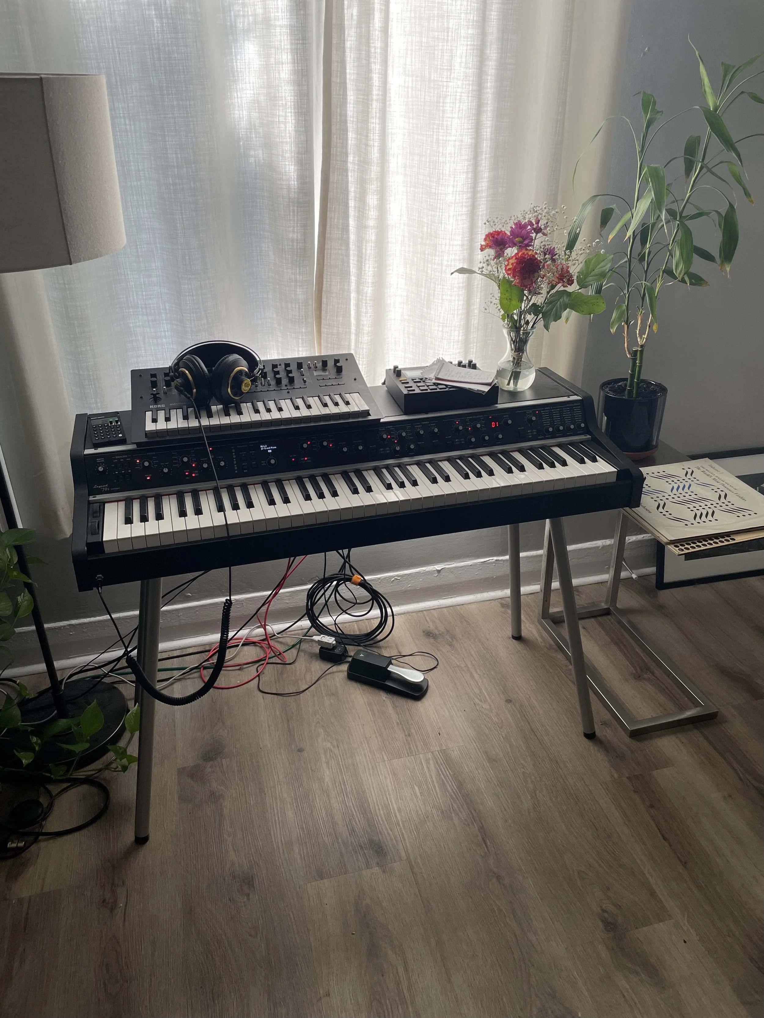 Here’s a picture of my keyboard setup from the time. I usually kept as much of this setup as possible plugged into my fender twin, just out of frame on the left. I found that running audio through the tubes and the old speakers, and getting air moving in the room was a great way to add life, color, and texture to any recording I made.